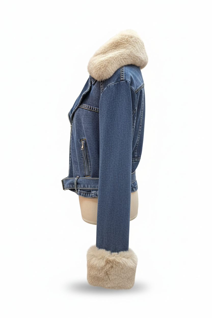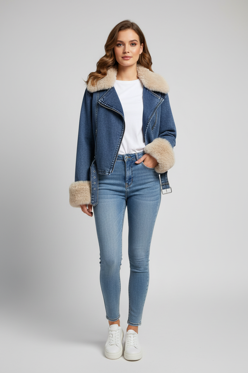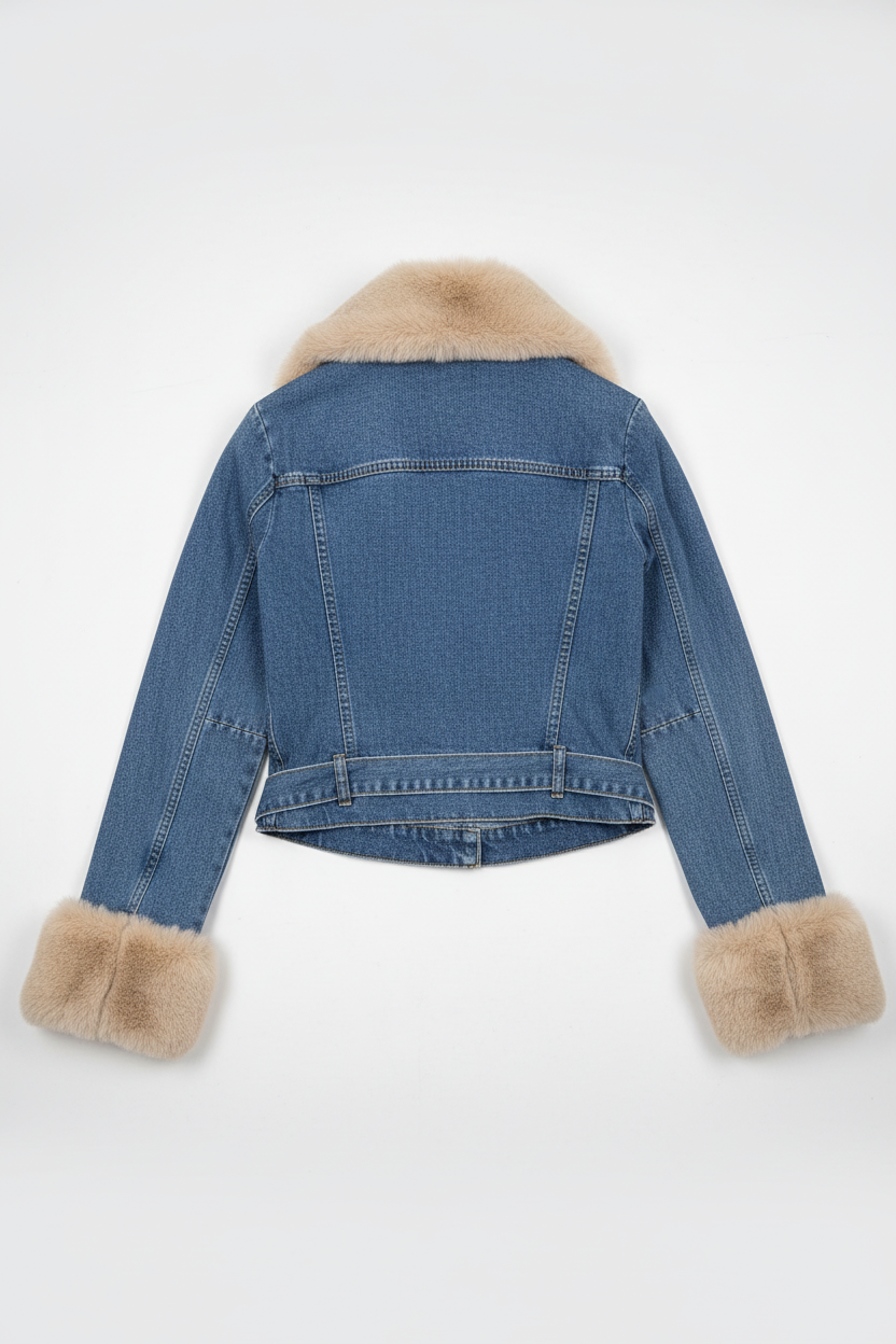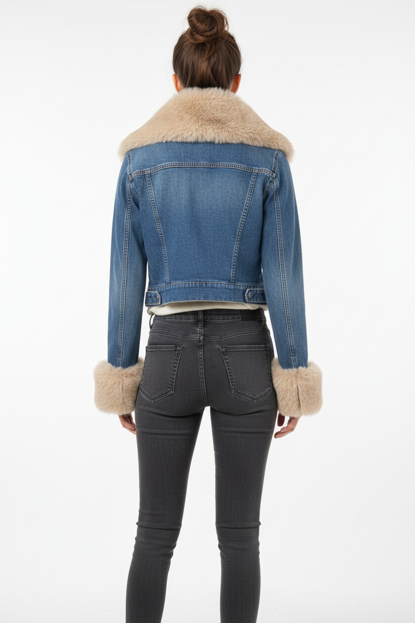 Denim Μπουφάν με Γούνινη Επένδυση